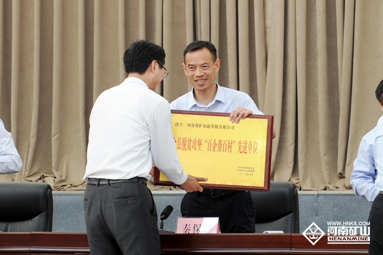2018年5月9日下午,長垣縣召開“長垣縣脫貧攻堅(jiān)第七次推進(jìn)會議”,會議表彰了在扶貧攻堅(jiān)工作中做出突出貢獻(xiàn)的集體和個人,河南礦山獲得“全縣脫貧攻堅(jiān)百企幫百村先進(jìn)單位”稱號。