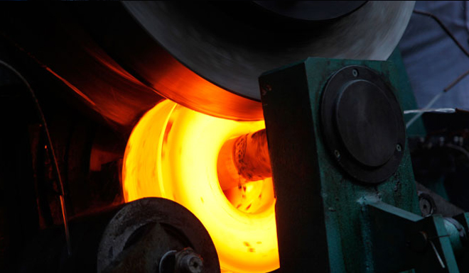 (2)鍛壓、碾壓復合成型工藝生產(chǎn)的車輪產(chǎn)品輪孔和輪槽是在壓力作用下碾壓成型的,原材料受到充分利用。與傳統(tǒng)的鍛壓成型工藝比較明顯的降低了原材料消耗,有利于降低成本,提高產(chǎn)品市場競爭力;