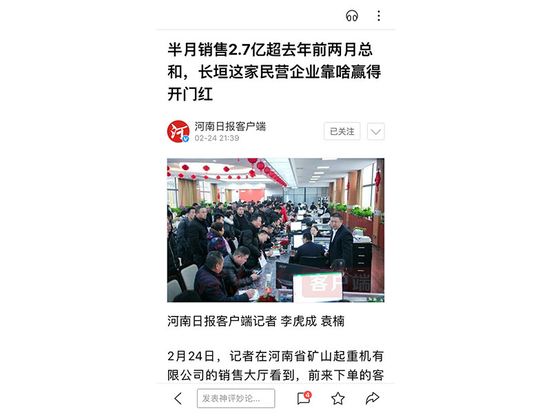 河南礦山被多家媒體爭(zhēng)相報(bào)道,絕非偶然事件。新聞聚焦的背后,展示的是河南礦山近年來(lái)在起重行業(yè)領(lǐng)域所取得的巨大成就,肯定了礦山人的辛勤努力與創(chuàng)新付出,也彰顯了河南礦山發(fā)展的蓬勃?jiǎng)蓊^和十足后勁!