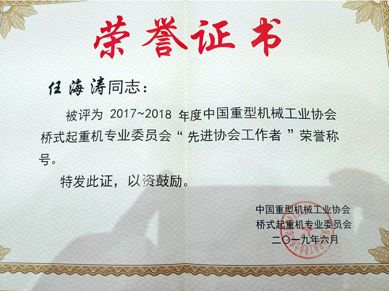 會(huì)上,表彰了2018年度全國企業(yè)。河南礦山再次榮獲“門式起重機(jī)生產(chǎn)企業(yè)”榮譽(yù)稱號(hào),此前,公司已多次獲得該項(xiàng)榮譽(yù);公司總經(jīng)理任海濤榮獲2017-2018年度中國重型機(jī)械工業(yè)協(xié)會(huì)橋式起重機(jī)專業(yè)委員會(huì)“先進(jìn)協(xié)會(huì)工作者”榮譽(yù)稱號(hào)。